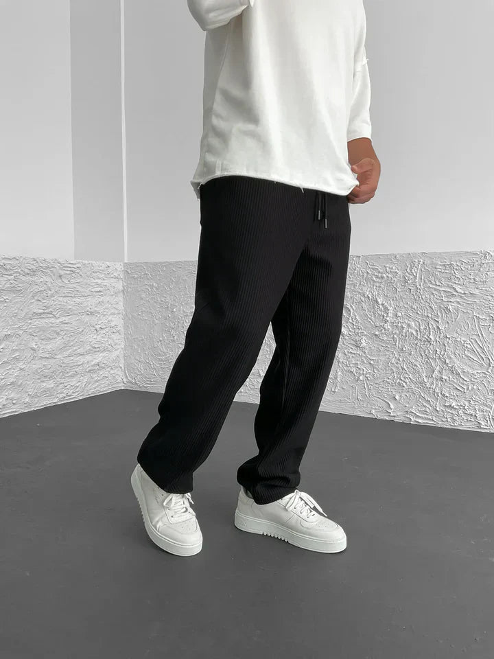 Harry – bequeme und stilvolle Hose für jeden Anlass. Mit ihrer gerippten Textur und entspannten Passform vereint sie Komfort und modernes Design. Perfekt für den Alltag und entspannte Abende.