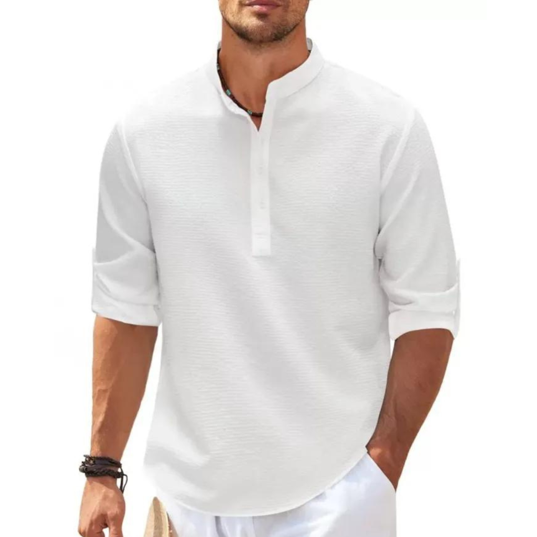 Vielseitiges Design: Klassisches Design mit Stehkragen und Knopfleiste, das perfekt für jede Gelegenheit passt. Die schlichte, einfarbige Gestaltung verleiht dem Hemd eine elegante, aber dennoch lässige Note.