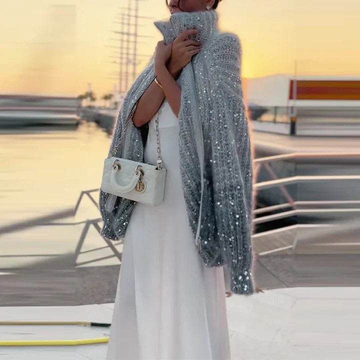 Erleben Sie glamourösen Komfort mit dem Estelle Strickpullover. Dieses Modell besticht durch weichen Strick und funkelnde Pailletten, die jedem Outfit eine luxuriöse Note verleihen. Perfekt für elegante Anlässe oder einen stilvollen Alltagslook, kombiniert dieser Pullover Wärme mit unwiderstehlichem Glanz.